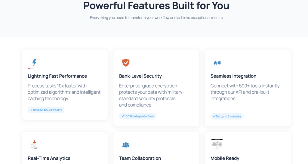 - No clear CTA: End the section with a specific action button like ‘See All Features’ or ‘Start Free Trial’, not just ‘Learn More’.