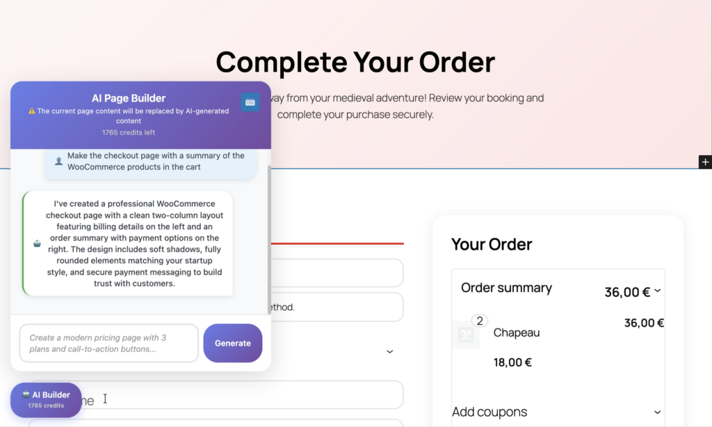The AI understands your requirements and generates clean, optimized JavaScript that runs natively in the browser. Your content remains pure HTML in the database—no shortcode soup, no proprietary markup. If you ever disable AI Builder, your pages stay intact.